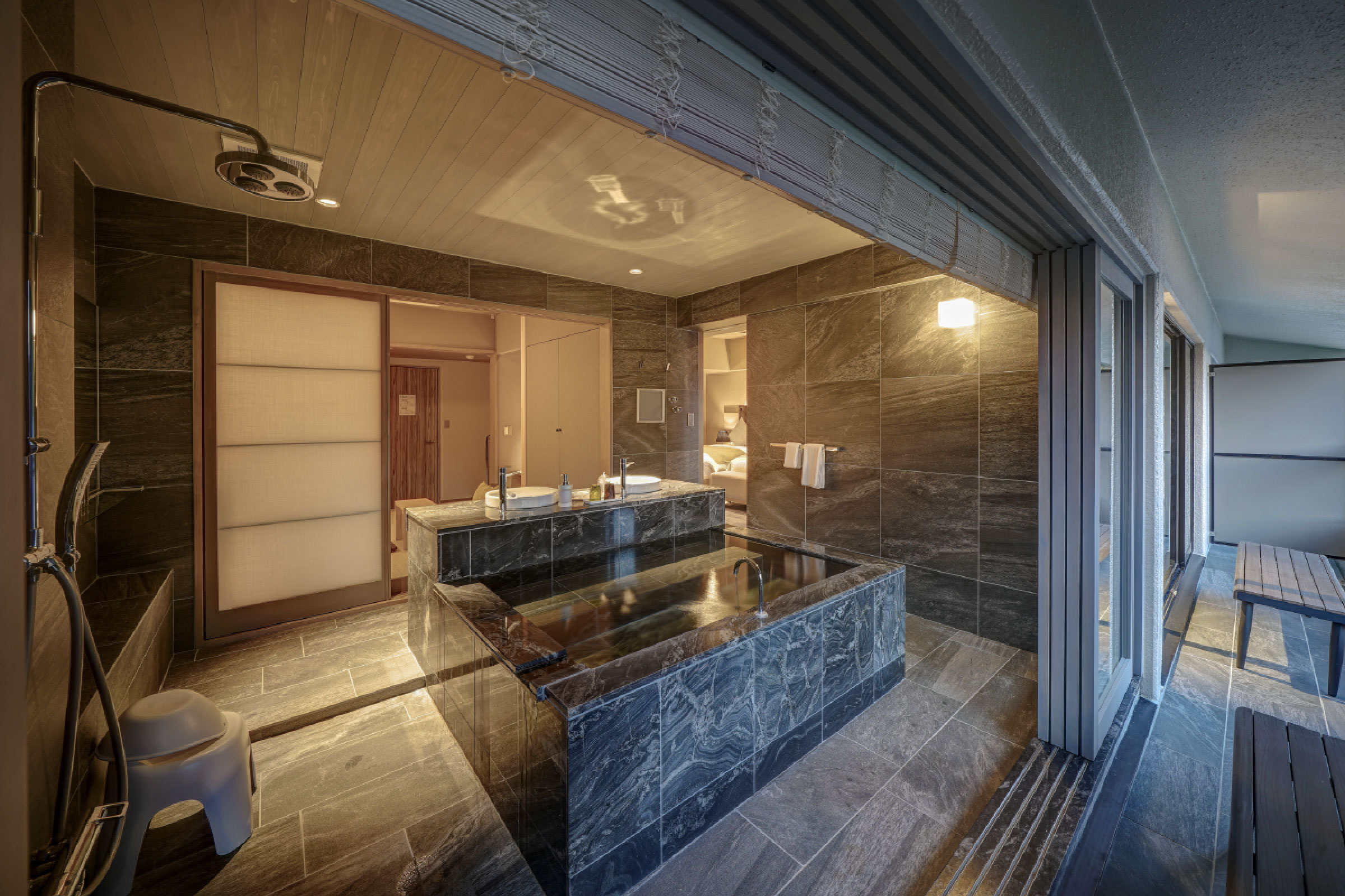 源泉かけ流し温泉付き(全開方式窓) -